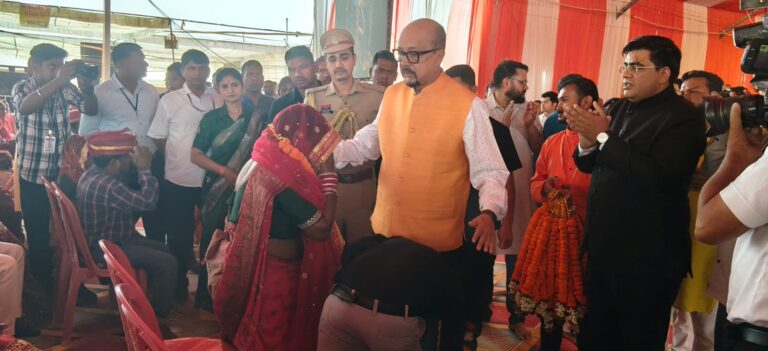 On the fourth day of Hanuman Katha, a huge crowd of devotees gathered in Dhapdhap; Agriculture Minister Ramvichar Netam and BJP National Vice President Saroj Pandey listened to the story.