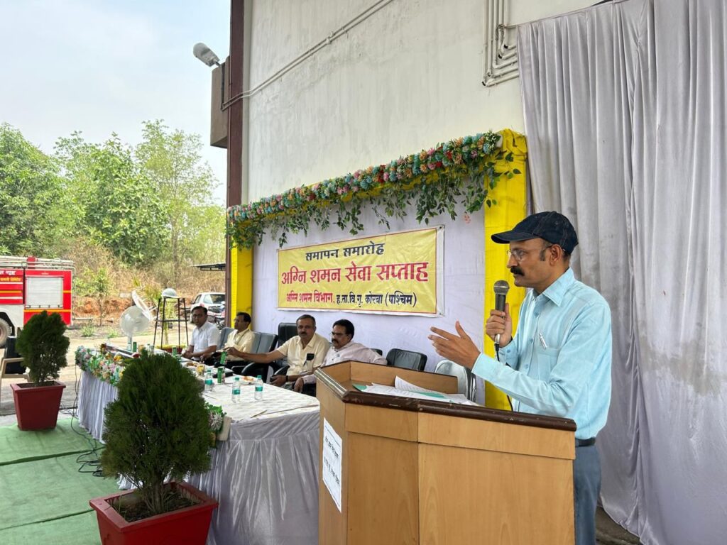 हसदेव ताप विद्युत संयंत्र (एचटीपीएस) कोरबा पश्चिम में 14 से 20 अप्रैल 2026 तक अग्निशमन सेवा सप्ताह मनाया गया। विशिष्ट अतिथि परियोजना प्रबंधक एसके. पंड्या ने भी कार्यक्रम को संबोधित किया। इस अवसर पर अतिरिक्त मुख्य अभियंता केएनबी. राव एवं मुख्य रसायनज्ञ एके. कुरनाल की गौरवमयी उपस्थिति रही।