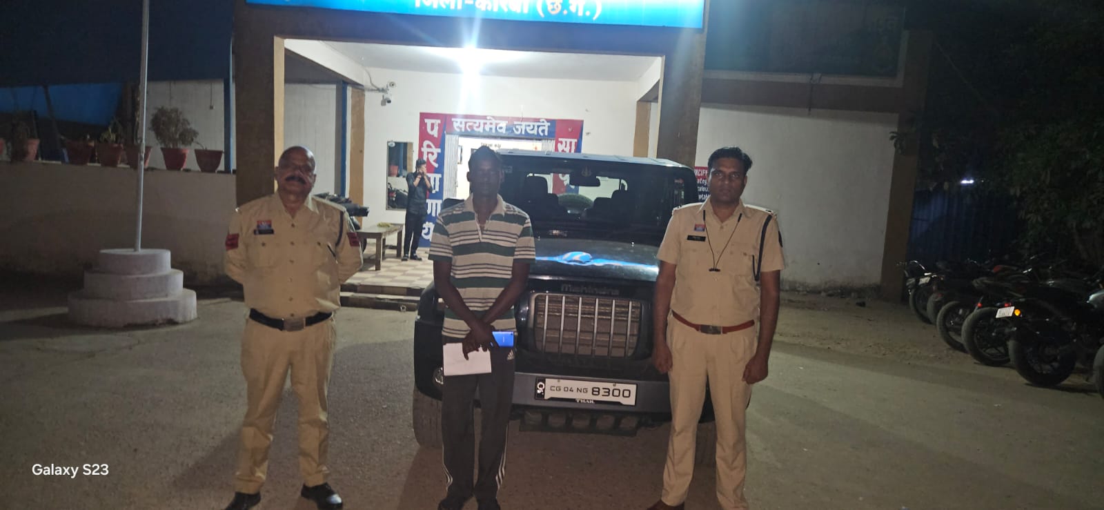 जांच के दौरान वाहन क्रमांक CG 04 NG 8300 (थार) का चालक रामकृष्ण साहू निवासी डेंगू नाल, कोरबा पाया गया तथा वाहन का स्वामी नंदू लाल साव निवासी दर्री, कोरबा होना पाया गया।