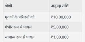 मुआवजा राशि की घोषणा