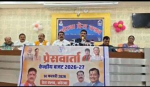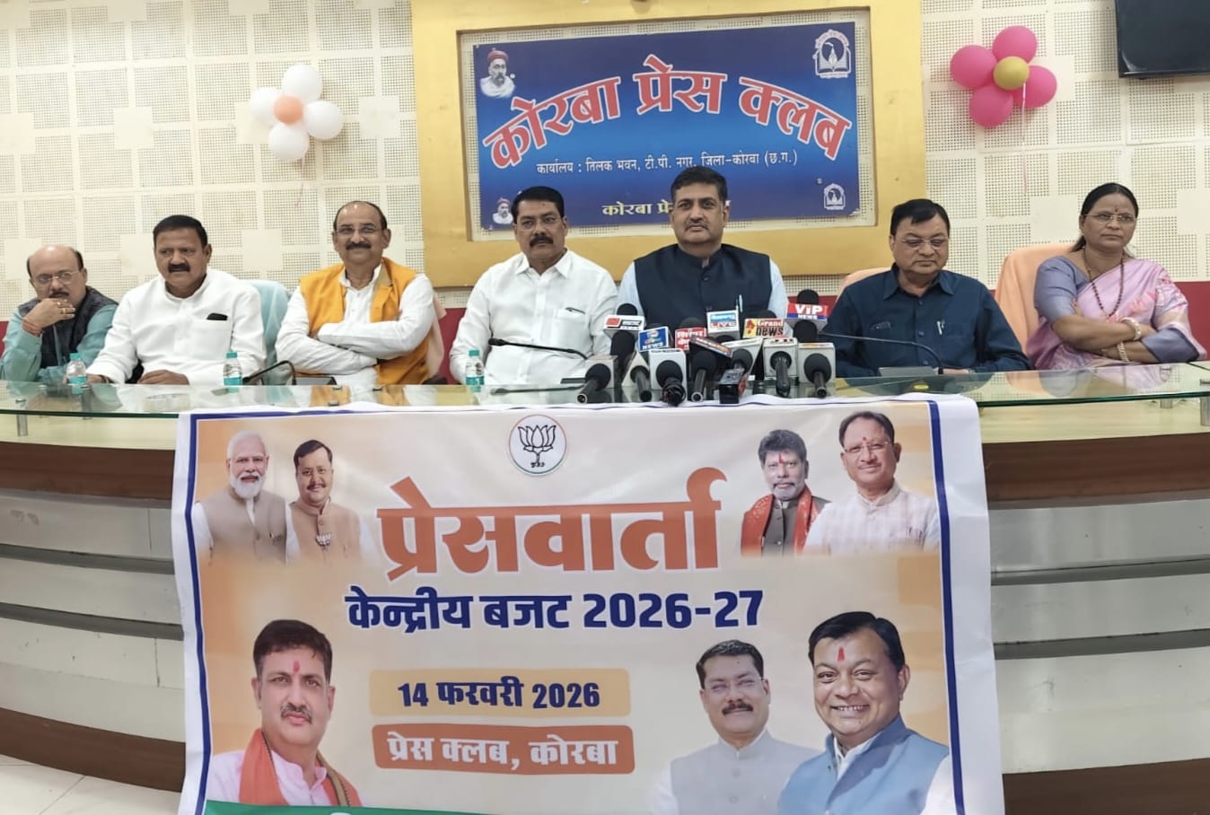 कोरबा 14 फरवरी2026/ केंद्रीय बजट 2026–27 को लेकर शनिवार को प्रेस क्लब तिलक भवन में आयोजित प्रेस वार्ता में विकास, उद्योग और जनकल्याण के मुद्दों पर जोरदार चर्चा हुई। प्रेस वार्ता को अध्यक्ष छत्तीसगढ़ खनिज विकास निगम (कैबिनेट मंत्री दर्जा) श्री सौरभ सिंह ने संबोधित करते हुए कहा कि केंद्रीय बजट को विकासोन्मुख, रोजगार सृजन करने वाला और जनहितकारी बताते हुए कहा कि यह बजट देश के साथ-साथ छत्तीसगढ़ और विशेष रूप से कोरबा के लिए नए अवसरों के द्वार खोलने वाला है। उन्होंने कहा कि बजट में बुनियादी ढांचे, खनिज क्षेत्र, उद्योग विस्तार और रोजगार सृजन को प्राथमिकता दी गई है, जिससे प्रदेश की अर्थव्यवस्था को नई गति मिलेगी और युवाओं को बड़े स्तर पर रोजगार के अवसर प्राप्त होंगे। प्रेसवार्ता में उद्योग मंत्री श्री लखन लाल देवांगन, भाजपा जिलाध्यक्ष श्री गोपाल मोदी, महापौर श्रीमती संजू देवी राजपूत, प्रदेश मंत्री सुश्री रितु चौरसिया, सह संभाग प्रभारी रायपुर डॉ. राजीव सिंह, पूर्व महापौर जोगेश लांबा, पूर्व जिलाध्यक्ष अशोक चालवाली, जिला महामंत्री संजय शर्मा, अजय विश्वकर्मा, वरिष्ठ पार्षद नरेंद्र देवांगन, जिला उपाध्यक्ष प्रफुल्ल तिवारी, नवदीप नंदा, अर्जुन गुप्ता, शैलेंद्र यादव, एमआईसी मेंबर हितानंद अग्रवाल, जिला अध्यक्ष महिला मोर्चा प्रिती स्वर्णकार, जिला अध्यक्ष किसान मोर्चा रामनारायण सराफ, जिला अध्यक्ष अल्पसंख्यक मोर्चा उत्तम सिंह रनधावा, प्रदीप सिंह, नीरज ठाकुर, मनोज मिश्रा, दीपक चावड़ा व उदय श्रीवास्तव सहित बड़ी संख्या में प्रिंट, इलेक्ट्रॉनिक एवं डिजिटल मीडिया के पत्रकार उपस्थित रहे।