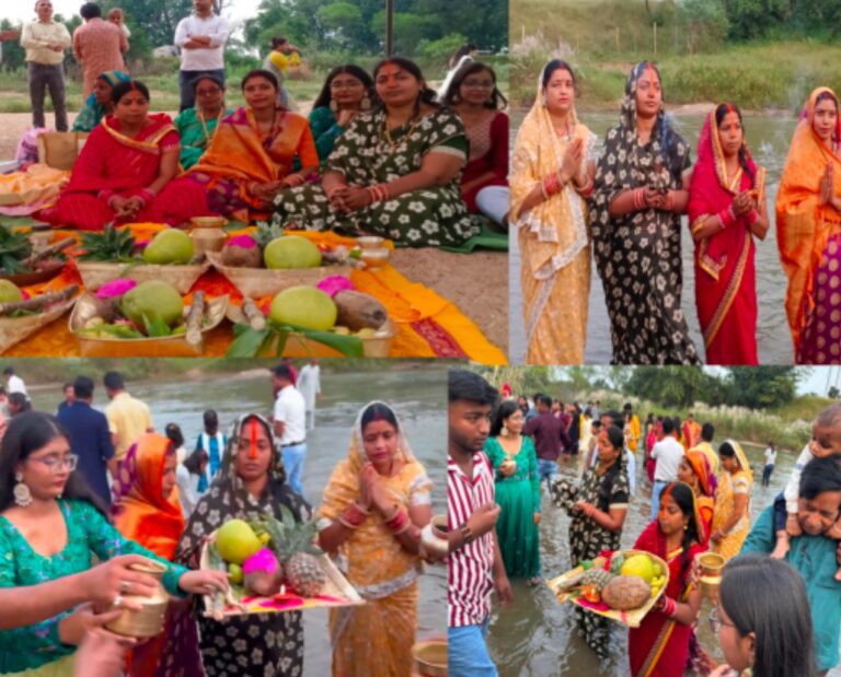 Chhath devotees offered prayers to the setting sun, a flood of devotees gathered at the ghats.
