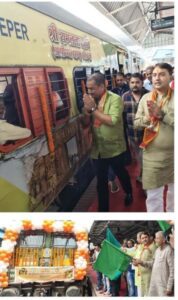 यह जत्था बिलासपुर रेलवे स्टेशन से चलने वाली विशेष ट्रेन के लिए रवाना किया गया। अयोध्या धाम जाने वाली इस विशेष ट्रेन को छत्तीसगढ़ पर्यटन मंडल के अध्यक्ष श्री नीलू शर्मा, विधायक सर्वश्री धरमजीत सिंह, धरमलाल कौशिक, सुशांत शुक्ला, जिला पंचायत अध्यक्ष श्री राजेश सूर्यवंशी ने हरी झंडी दिखाकर रवाना किया।