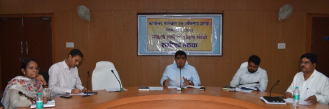 बैठक में निगमायुक्त श्री आशुतोष पांडेय, अपर कलेक्टर श्री देवेंद्र पटेल, डिप्टी कलेक्टर श्री तुलाराम भारद्वाज, अधीक्षक भू-अभिलेख, तहसीलदार, नायब तहसीलदार एवं राजस्व निरीक्षक, पटवारी उपस्थित रहे।
