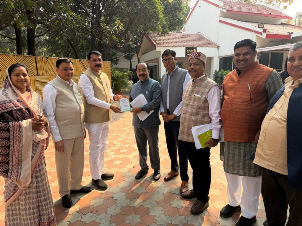 कोरबा। भारतीय जनता पार्टी जिला कार्यालय, कोरबा के नवीन भवन के भूमिपूजन कार्यक्रम (दिनांक 2 फरवरी) को लेकर आज रायपुर में उच्चस्तरीय सौजन्य भेंट की गई। उद्योग मंत्री श्री लखन देवांगन जी एवं भाजपा जिलाध्यक्ष श्री गोपाल मोदी जी ने मुख्यमंत्री निवास, सिविल लाइन रायपुर में माननीय मुख्यमंत्री आदरणीय श्री विष्णु देव साय जी, उपमुख्यमंत्री श्री अरुण साव जी, उपमुख्यमंत्री श्री विजय शर्मा जी, वित्त मंत्री श्री ओ.पी. चौधरी जी सहित मंत्रिमंडल के माननीय सदस्यों से भेंट कर उन्हें सादर आमंत्रित किया गया। माननीय मुख्यमंत्री समेत पूरे मंत्रीमंडल ने आयोजन में सहभागिता हेतु आमंत्रण सहर्ष स्वीकार किया।