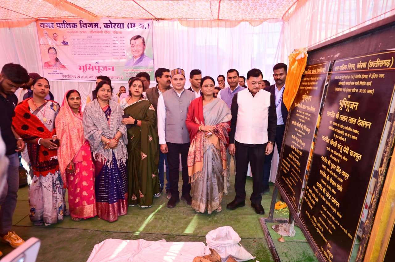 सीतामणी चैक कोरबा में आयोजित भूमिपूजन कार्यक्रम में निगम के वार्ड क्र. 01, 05, 06, 08 व 09 को मिली विकास कार्यो की सौगात