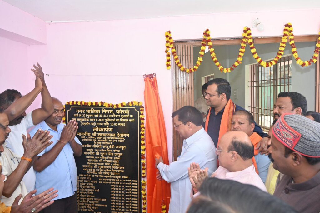 कोरबा नगर निगम क्षेत्र अंतर्गत गौरी शंकर मंदिर के समीप बने 10 लाख की लागत के सामुदायिक भवन का फीता काटकर लोकार्पण किया। इस अवसर पर क्षेत्र वासियों ने मंत्री श्री देवांगन का अभिनंदन किया। कार्यक्रम में सभापति नूतन सिंह, पार्षद सुख सागर निर्मलकर, पार्षद पंकज देवांगन, पार्षद नरेंद्र देवांगन, पार्षद अशोक चावलानी, पार्षद श्रीमती ममता यादव, भाजपा जिला उपाध्यक्ष प्रफुल्ल तिवारी के साथ-साथ क्षेत्रवासी अधिक संख्या में उपस्थित रहे।