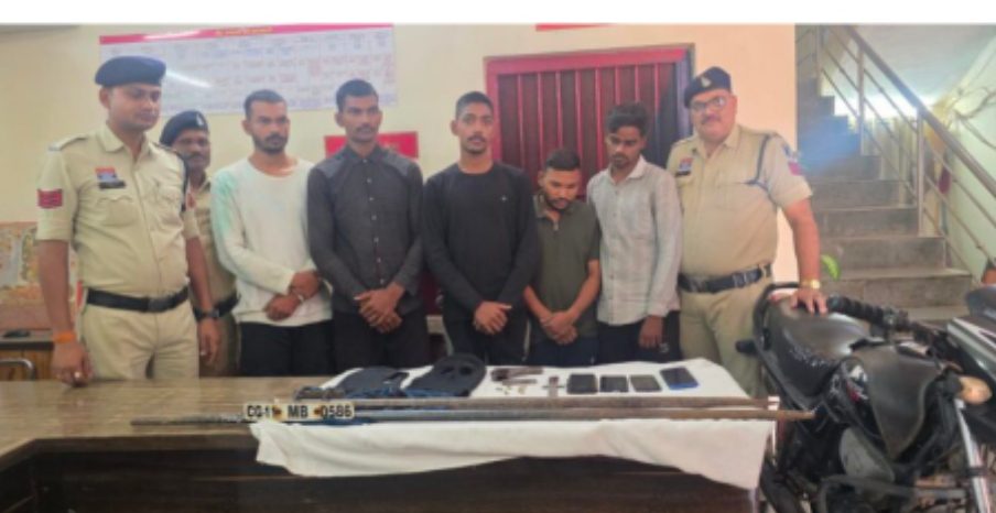 जांजगीर चांपा, 06 अक्टूबर 2025। जांजगीर पुलिस ने डकैती का प्रयास करने वाले 5 आरोपियों को आज गिरफ्तार किया है। आरोपियों के पास से पुलिस ने 1 पिस्टल, 5 कारतूस, 1 चाकू, 1 मोबाइल, 2 सब्बल, 2 नकाब और घटना में प्रयुक्त मोटर साइकिल बरामद की है।