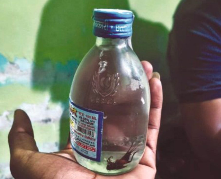 कटघोरा की सरकारी देशी शराब दुकान से खरीदी गई एक बोतल में कीड़ा मिलने के बाद लोगों ने हंगामा किया