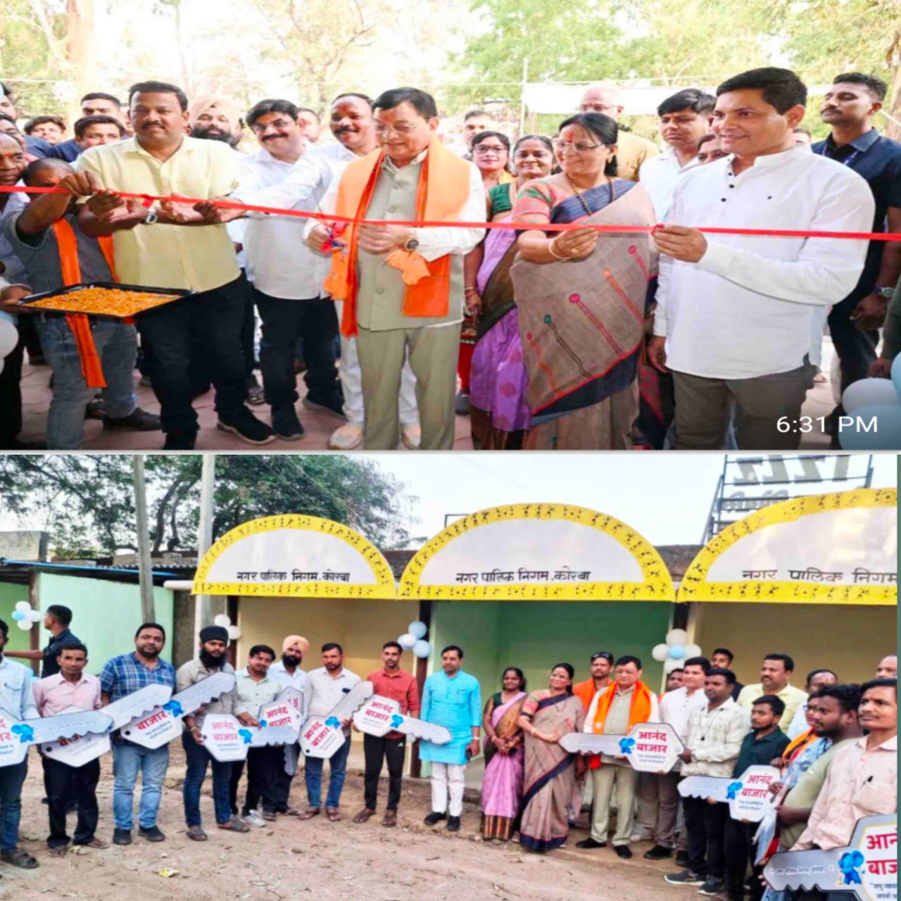 (उद्योग मंत्री श्री लखनलाल देवांगन के मुख्य आतिथ्य एवं महापौर श्रीमती संजूदेवी राजपूत की अध्यक्षता में आयोजित कार्यक्रम में बुधवारी बाजार पार्किंग जोन में नवनिर्मित आनंद बाजार वेंडिंग जोन का किया गया लोकार्पण, उद्योग मंत्री व महापौर ने लघु व्यापारियों को दी दुकानों की चाबी )