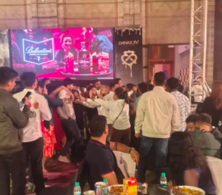 Two groups clashed in a hotel courtyard, with young women trying to intervene.