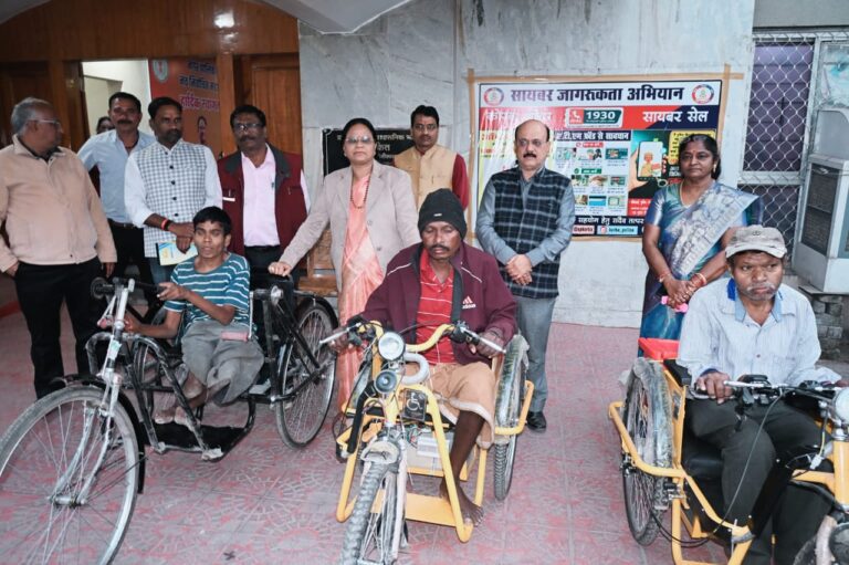 The Mayor presented tricycles to Divyang Ratiram, Unors and Dilip.