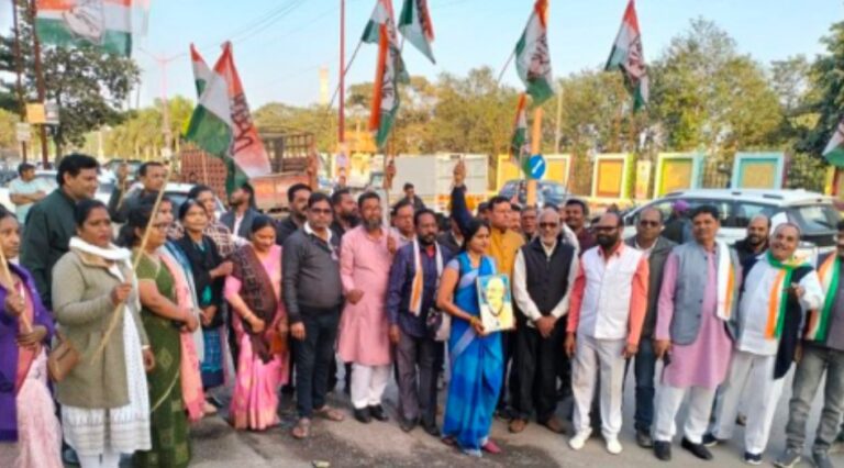कोरबा में मनरेगा के कथित नए कानून के विरोध में कांग्रेस का प्रदर्शन, भाजपा सरकार पर गरीबों के अधिकार छीनने का आरोप