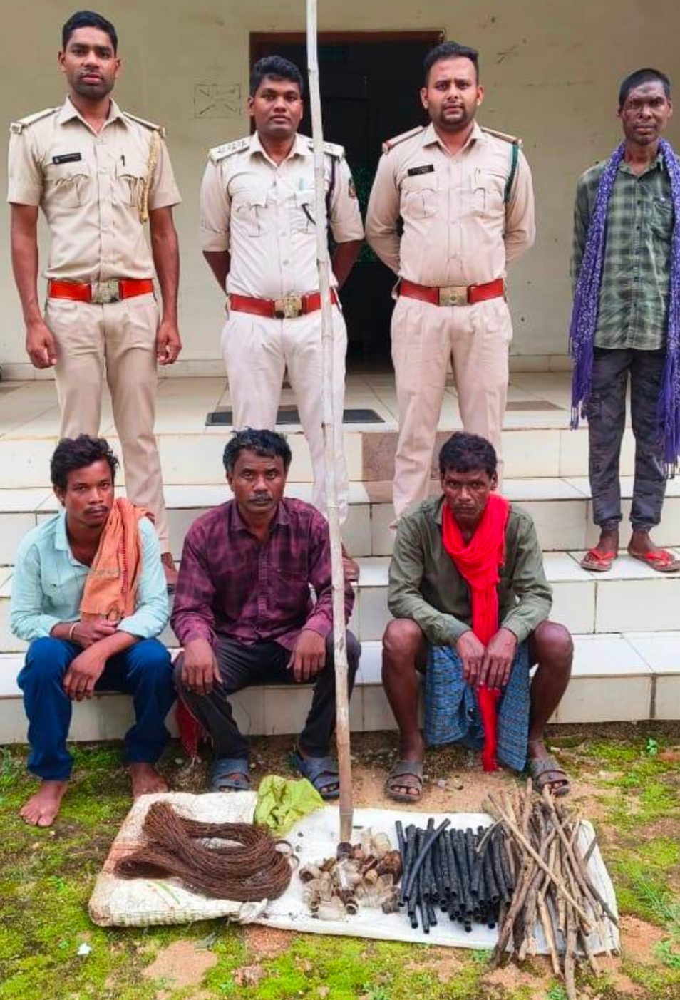 रायपुर, 02 सितम्बर 2025/वन मंत्री श्री केदार कश्यप के निर्देशानुसार वन्य प्राणियों के संरक्षण और संवर्धन की दिशा में सख्त कार्रवाई करते हुए बलौदाबाजार वनमण्डल ने शिकार की एक बड़ी साजिश को विफल किया है। वनमण्डलाधिकारी बलौदाबाजार श्री धम्मशील गणवीर ने बताया कि देवपुर वन परिक्षेत्र की टीम ने 31 अगस्त 2025 की रात कसौंदी बीट में गश्त के दौरान शिकार की योजना बना रहे तीन आरोपियों को रंगेहाथ गिरफ्तार किया। ये आरोपी विद्युत जीआई तार को 11 केवी लाइन से जोड़कर वन्य प्राणियों का शिकार करने की कोशिश कर रहे थे। इन आरोपियों से मौके पर जीआई तार, दवाइयों की खाली शीशियाँ, लकड़ी की खूंटी, प्लास्टिक कवर पाइप और बांस की डांगिनी जैसी सामग्री जब्त की गई।