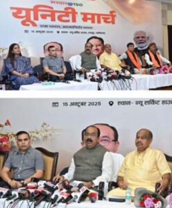उप मुख्यमंत्री श्री साव ने प्रेस-कॉन्फ्रेंस में बताया कि केन्द्रीय युवा कार्यक्रम और खेल मंत्रालय ने 6 अक्टूबर 2025 को सरदार@150 यूनिटी मार्च (Sardar@150 Unity March) की शुरुआत की है। यह भारत सरकार और ‘मेरा युवा भारत’ (MY Bharat) की पहल है, जो लौहपुरूष सरदार वल्लभभाई पटेल की 150वीं जयंती को समर्पित है। इस राष्ट्रव्यापी कार्यक्रम का उद्देश्य युवाओं में एकता, देशभक्ति और कर्तव्य भावना को जागृत करना है। सरदार पटेल ने जिस तरह बिखरे हुए भारत को एक भारत बनाया, उसी भावना को यह पदयात्रा आगे बढ़ाएगी। इस अभियान के जरिए युवाओं को एक भारत और आत्मनिर्भर भारत के आदर्श को अपनाने के लिए प्रेरित किया जाएगा।