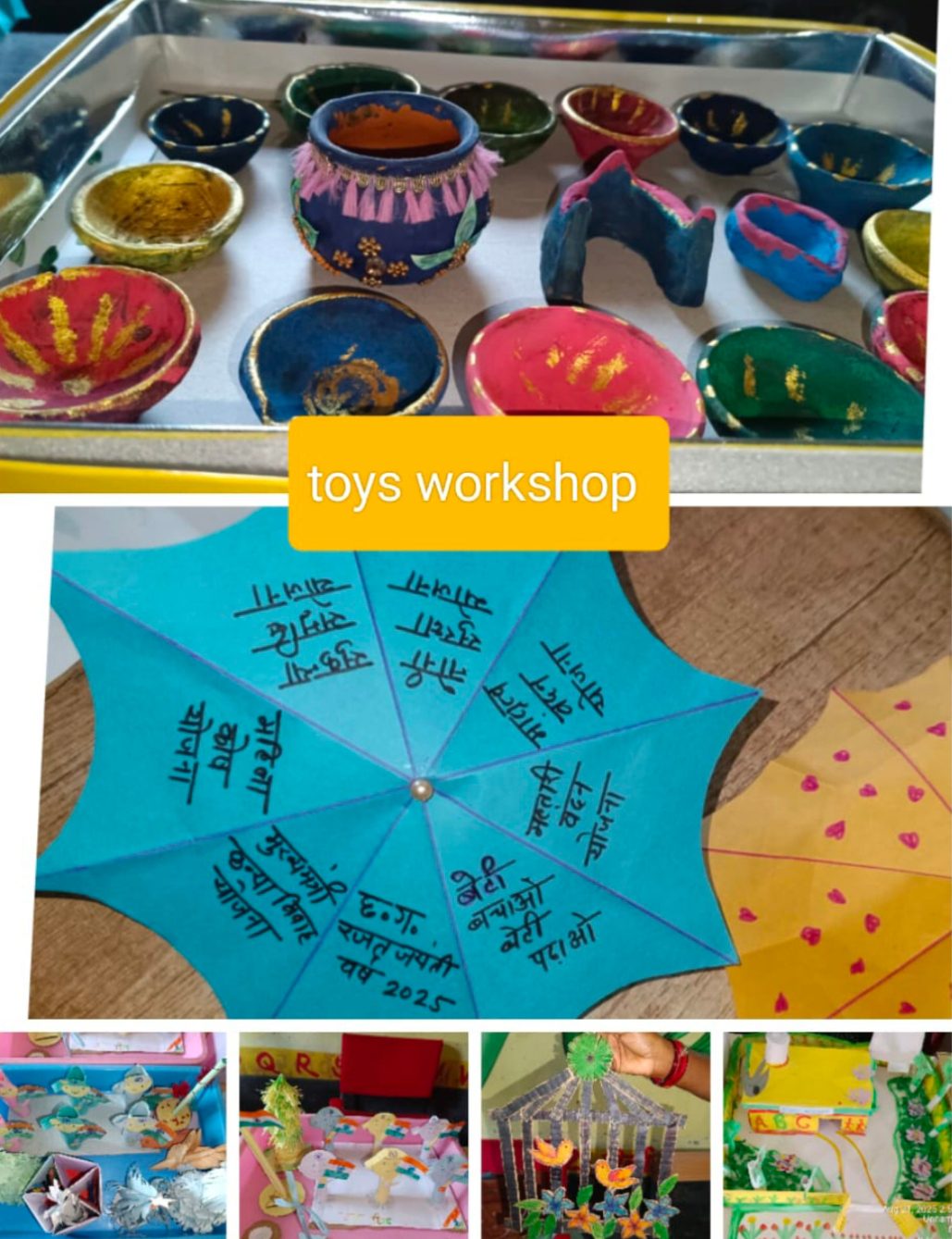 जिले के आंगनबाड़ी केंद्रों को स्पेशल लर्निंग एवं आनंदपूर्ण स्थल बनाने के उद्देश्य से ECCE गतिविधियों के तहत टॉय मेकिंग वर्कशॉप भी आयोजित की गई। इसमें कार्यकर्ताओं, सहायिकाओं, पालकों तथा स्थानीय शिल्पकारों ने मिलकर अनुपयोगी वस्तुओं का उपयोग कर खिलौने एवं शिक्षण सामग्री तैयार की। सबसे अच्छे खिलौने एवं शिक्षण सामग्री बनाने वालों को प्रोत्साहन स्वरूप पुरस्कार प्रदान किए गए। इन सभी कार्यक्रमों का उद्देश्य बच्चों, महिलाओं एवं समाज को स्वास्थ्य, शिक्षा और पोषण के प्रति जागरूक करना है, ताकि जिले के प्रत्येक नागरिक तक राज्य शासन की योजनाओं का लाभ पहुँच सके।