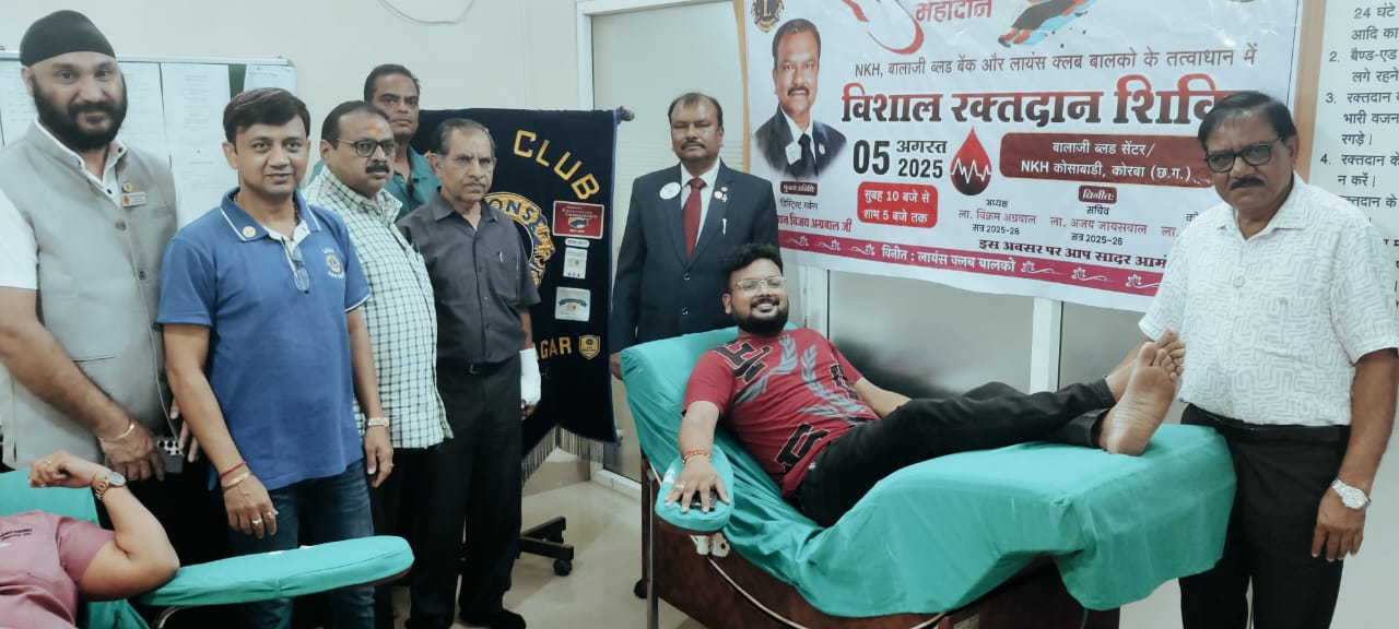 कोरबा । एनकेएच बालाजी ब्लड बैंक एवं लायंस क्लब बालको के संयुक्त तत्वावधान में मंगलवार को एक विशाल रक्तदान शिविर का आयोजन किया गया। यह आयोजन कोसाबाड़ी स्थित एनकेएच बालाजी ब्लड सेंटर परिसर में संपन्न हुआ, जिसमें बड़ी संख्या में युवाओं और अस्पताल स्टाफ ने भाग लेकर मानवता का संदेश दिया।