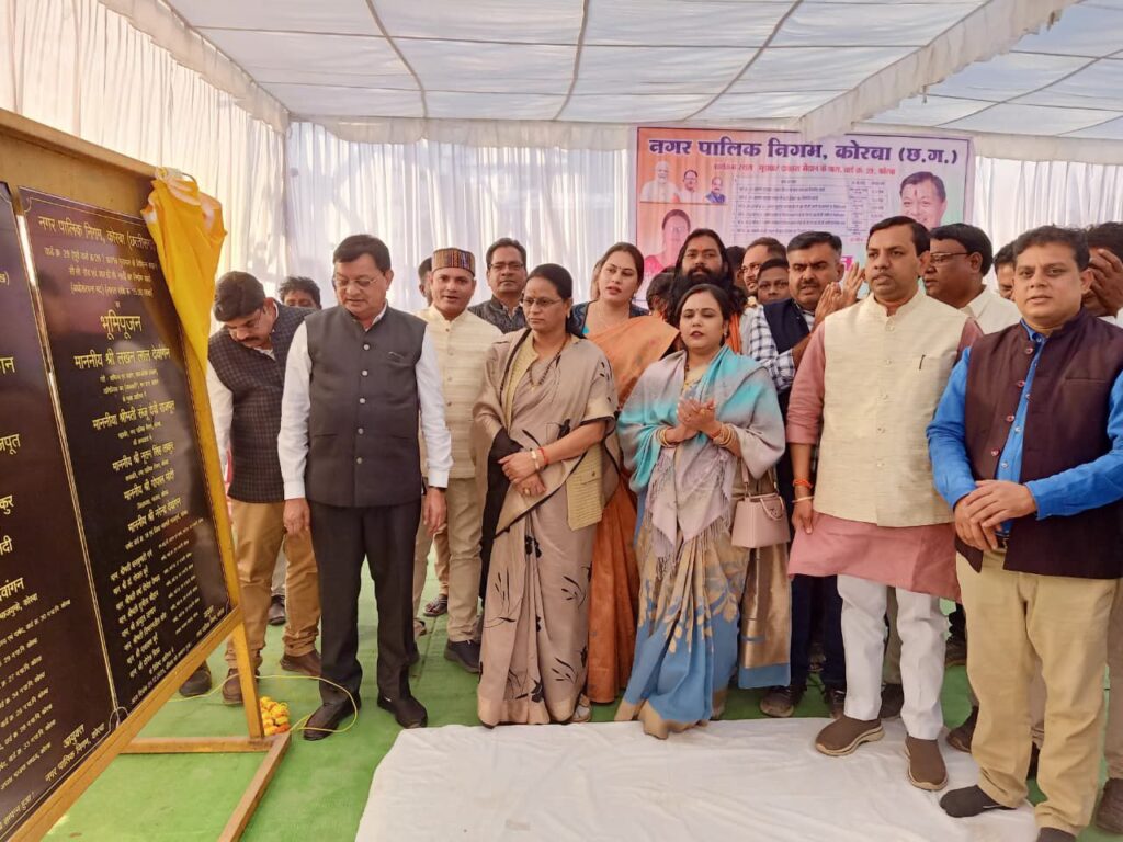 कोरबा 21 दिसम्बर 2025 – प्रदेश के उद्योग, वाणिज्य, श्रम, आबकारी व सार्वजनिक उपक्रम मंत्री श्री लखनलाल देवांगन के मार्गदर्शन एवं महापौर श्रीमती संजूदेवी राजपूत के दिशा निर्देशन में नगर पालिक निगम केारबा क्षेत्र में किए जा रहे विकास कार्यो की एक और महत्वपूर्ण कड़ी के रूप में निगम के 06 वार्डो को आज 16 नए विकास कार्यो की सौगात प्राप्त हुई है। उद्योग मंत्री श्री देवांगन के मुख्य आतिथ्य एवं महापौर की अध्यक्षता में निगम क्षेत्र के विभिन्न स्थानों में आयोजित भूमिपूजन कार्यक्रम के दौरान आज 01 करोड़ 87 लाख रूपये के नए विकास कार्यो का भूमिपूजन किया गया। उद्योग मंत्री श्री लखनलाल देवांगन के मार्गदर्शन व महापौर श्रीमती संजूदेवी राजपूत के दिशा निर्देशन में नगर पालिक निगम केारबा क्षेत्र में लगातार विकास कार्य जारी हंै, इसी कड़ी मंे आज रविवार को निगम के वार्ड क्र. 33, 34, 29, 30 एवं 10, 06 में आज 01 करोड़ 87 लाख रूपये की लागत वाले 16 नए विकास कार्यो की सौगात दी गई है। यहाॅं उल्लेखनीय है कि विगत शनिवार को निगम के 08 वार्डो को 02 करोड़ 61 लाख रूपये के नए विकास कार्यो की सौगात प्राप्त हुई थी। आज निगम क्षेत्र की सुदूर बस्ती ढेलवाडीह के साथ ही मुड़ापार, इमलीडुग्गू में आयोजित भूमिपूजन कार्यक्रमों के दौरान इन विकास कार्यो का भूमिपूजन सम्पन्न कराया गया।